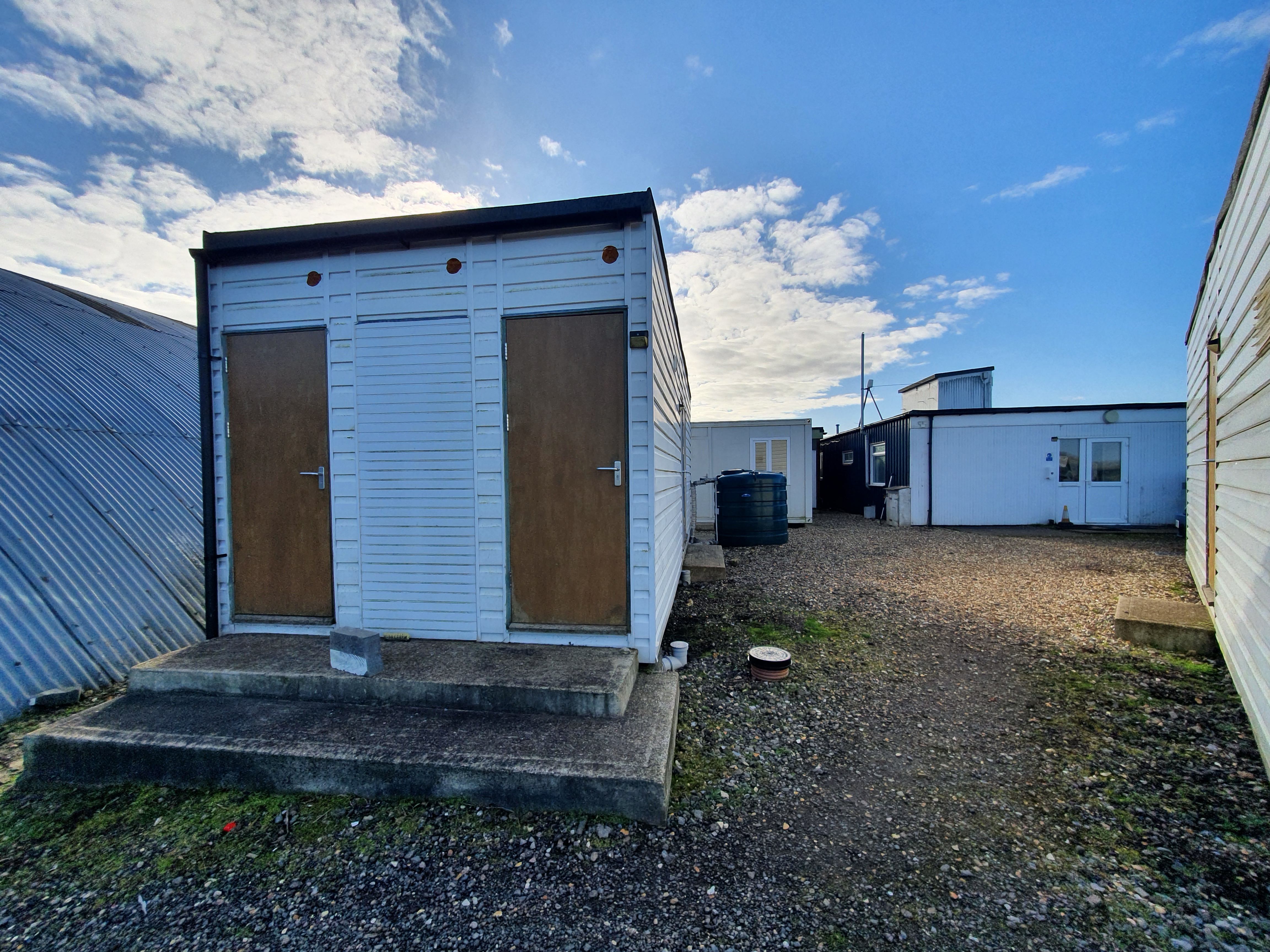 View of the shower block and the back door of the clubhouse. 4 showers in total, accessible 24/7.