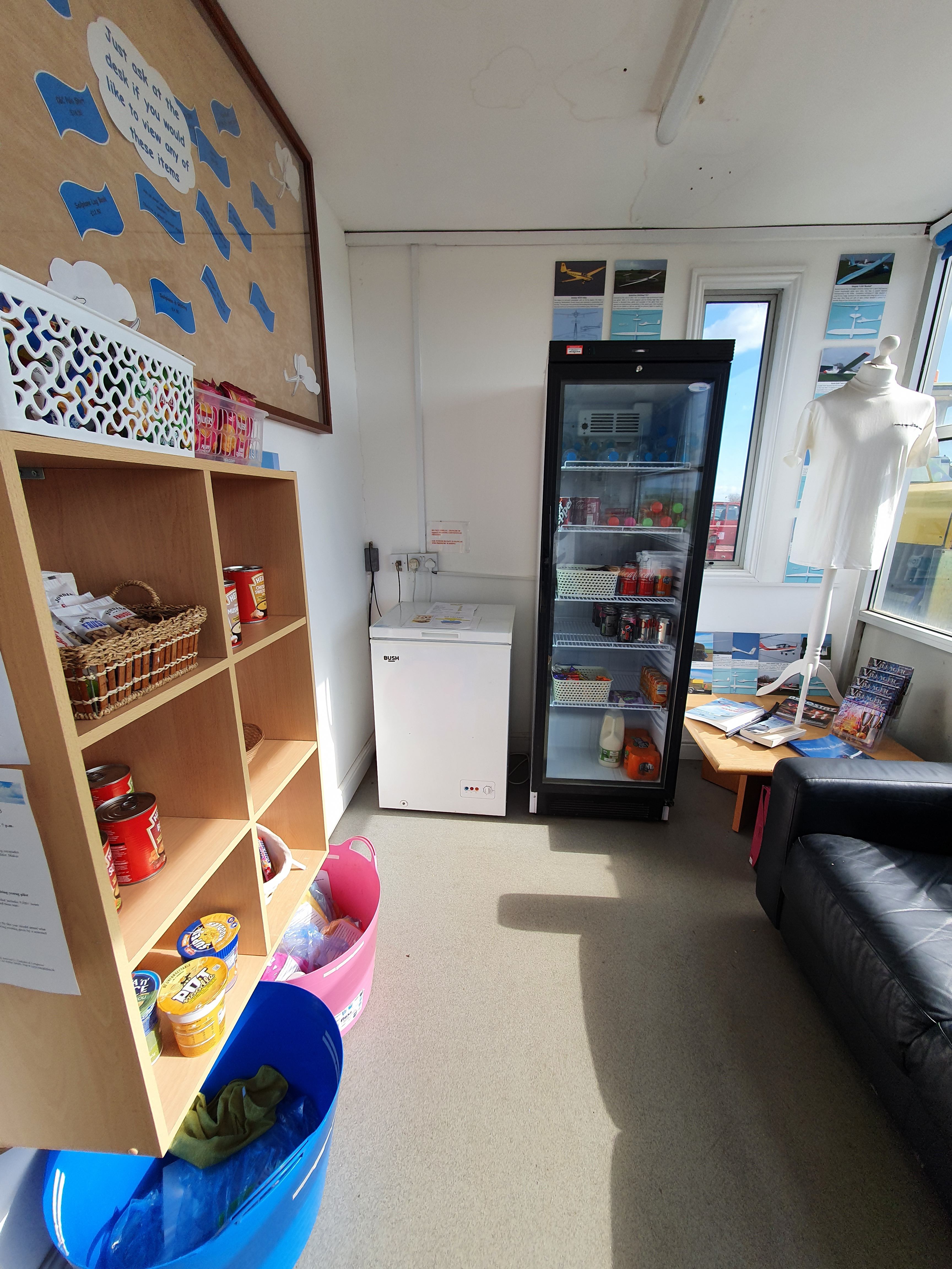 Right: Snack bar in the office. In buckets below are canopy cleaning materials