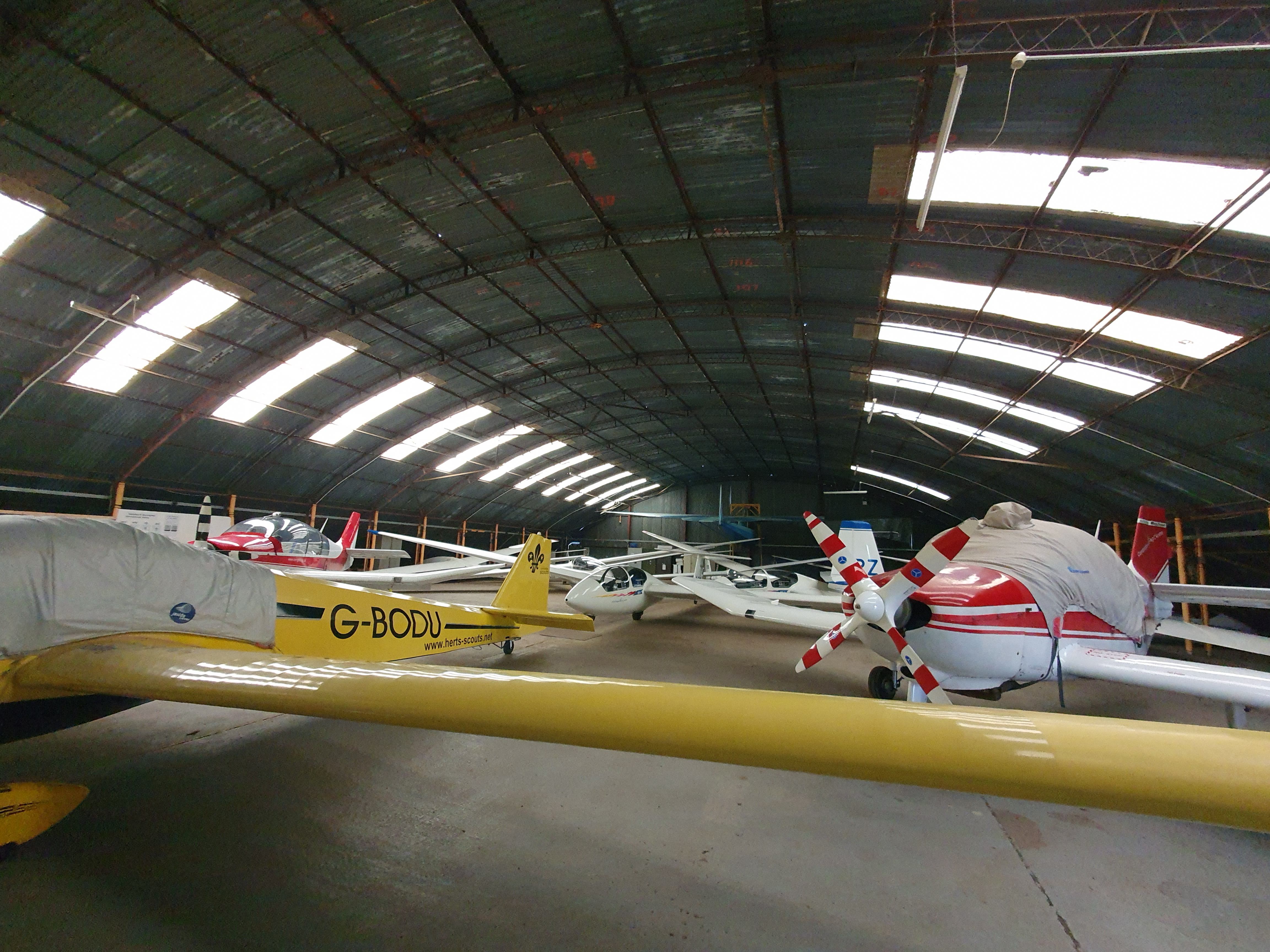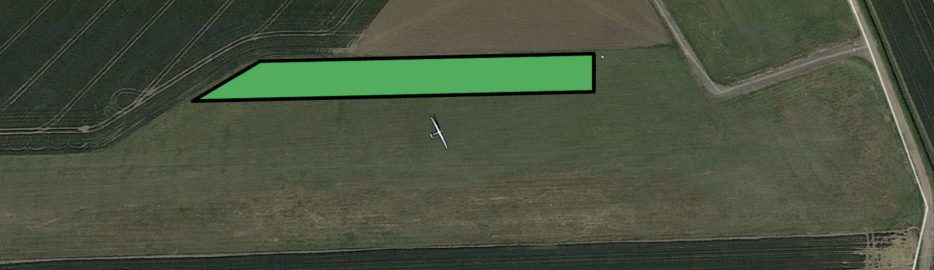 The orange area can be used to pitch 2-seaters overnight, but the area is part of an active runway and must be cleared before daily operations. You will see other gliders pitched alongside, but those are paid-for spots by full members of Cambridge Gliding Centre.