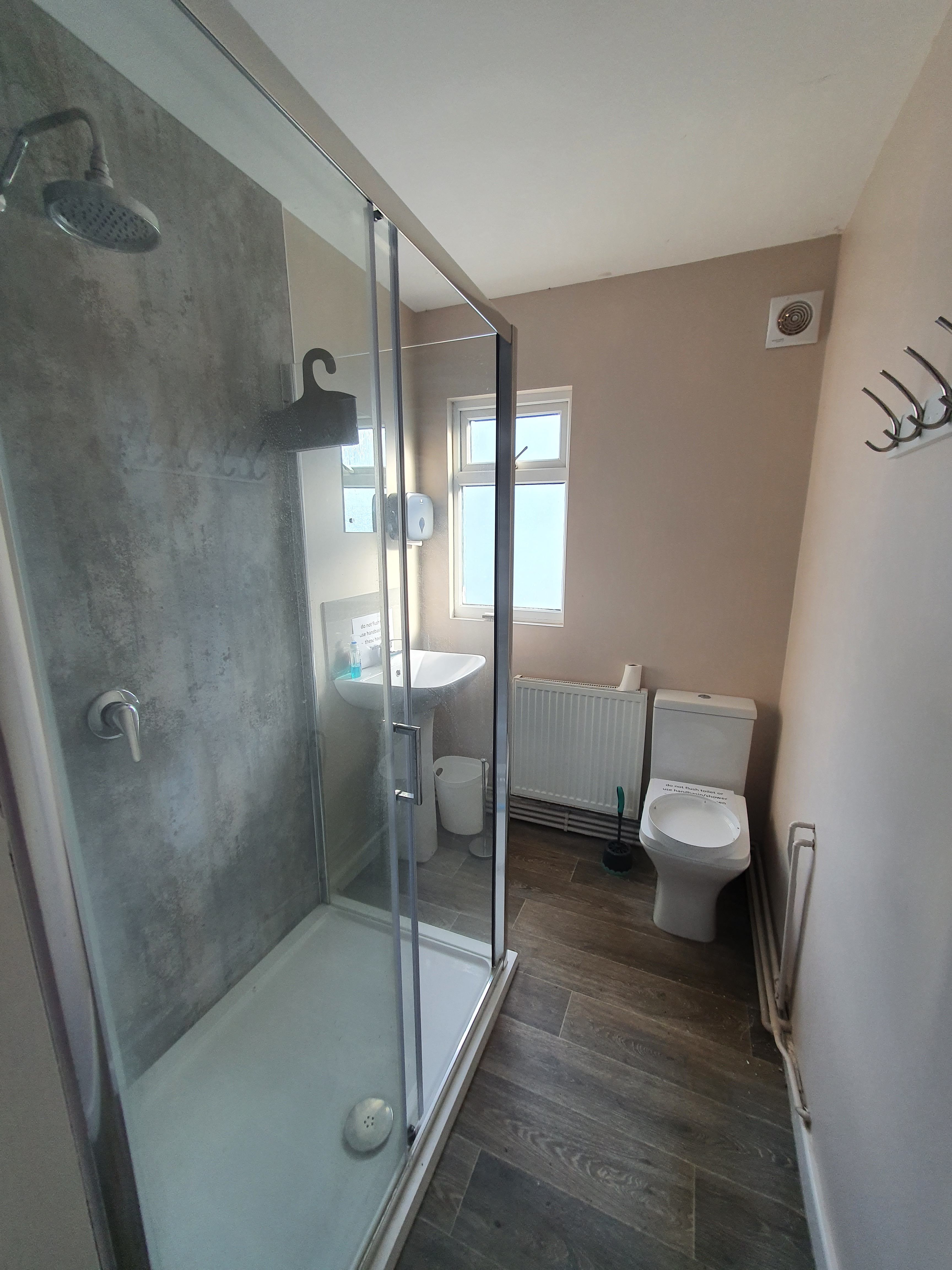 Left: Shower and Toilets